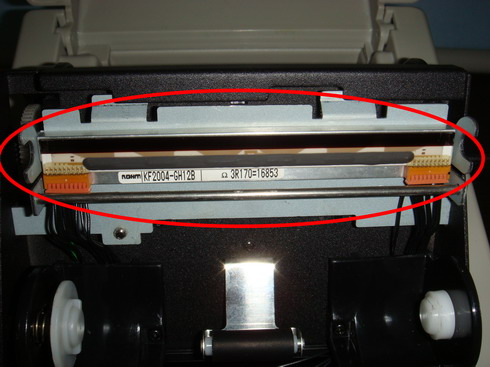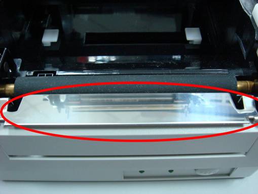打开Argox OS214TT条码打印机顶盖及松开打印头模组,此时请观察打印头: