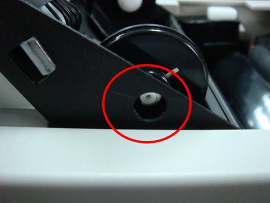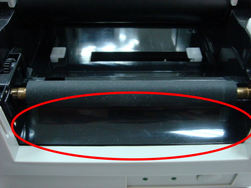 打开Argox OS214TT条码打印机顶盖及松开打印头模组,此时请观察在打印头模组碳带供应端左侧,新款Argox OS214TT条码打印机设计为开口半椭圆形,旧款Argox OS214TT条码打印机设计为密封圆形,如是您在07年11月以後购买新机的,并在新机发现打印头模组碳带供应端为密封圆形而非开口半椭圆形时,则可判定为仿冒品。图片如下:
